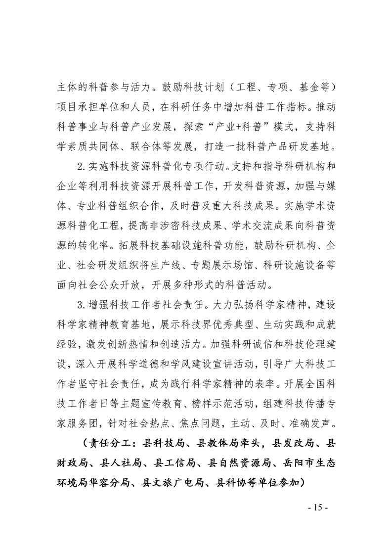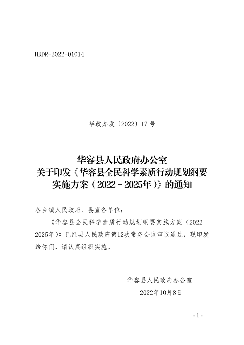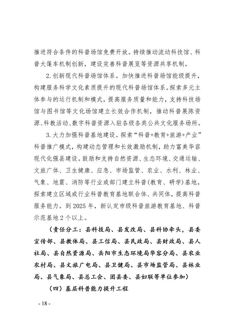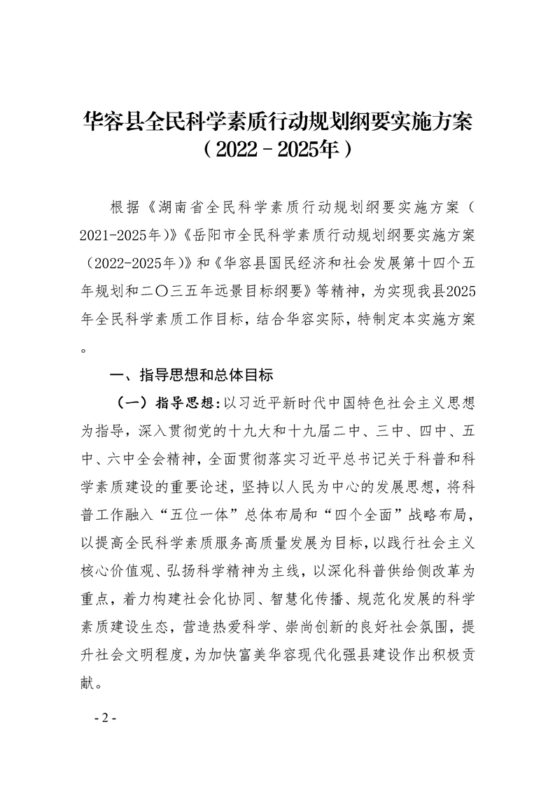 华容县人民政府办公室 关于印发《华容县全民科学素质行动规划纲要 实施方案(2022-2025年)》的通知