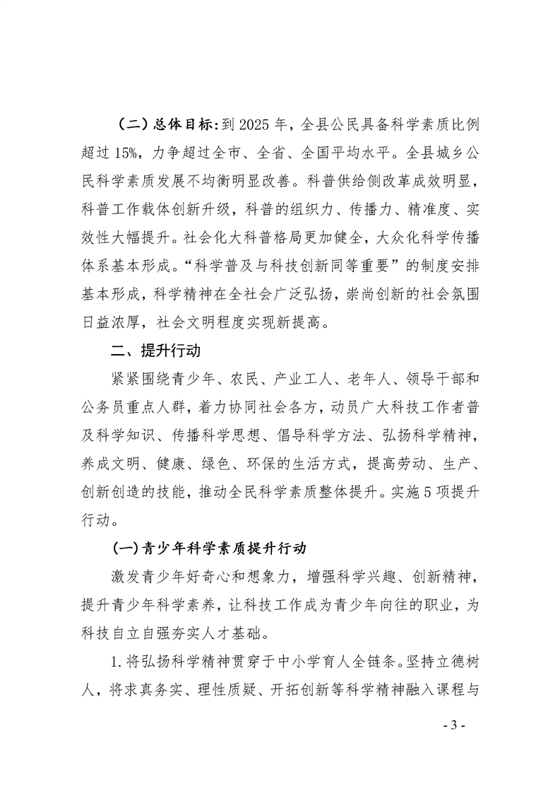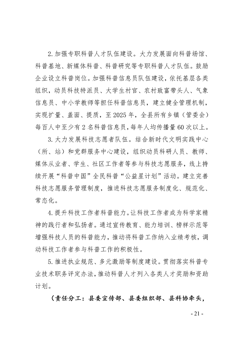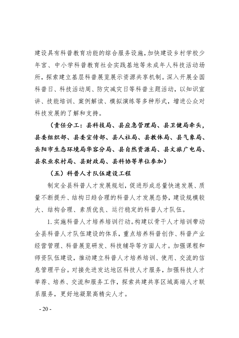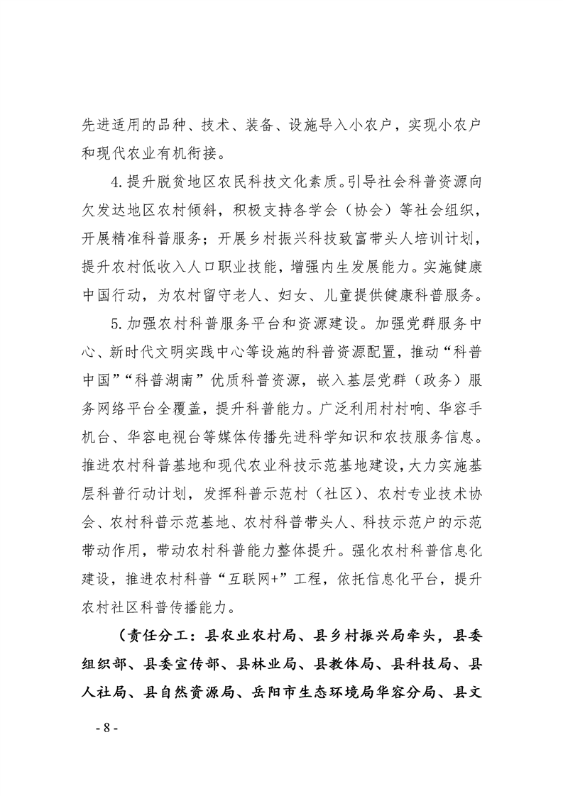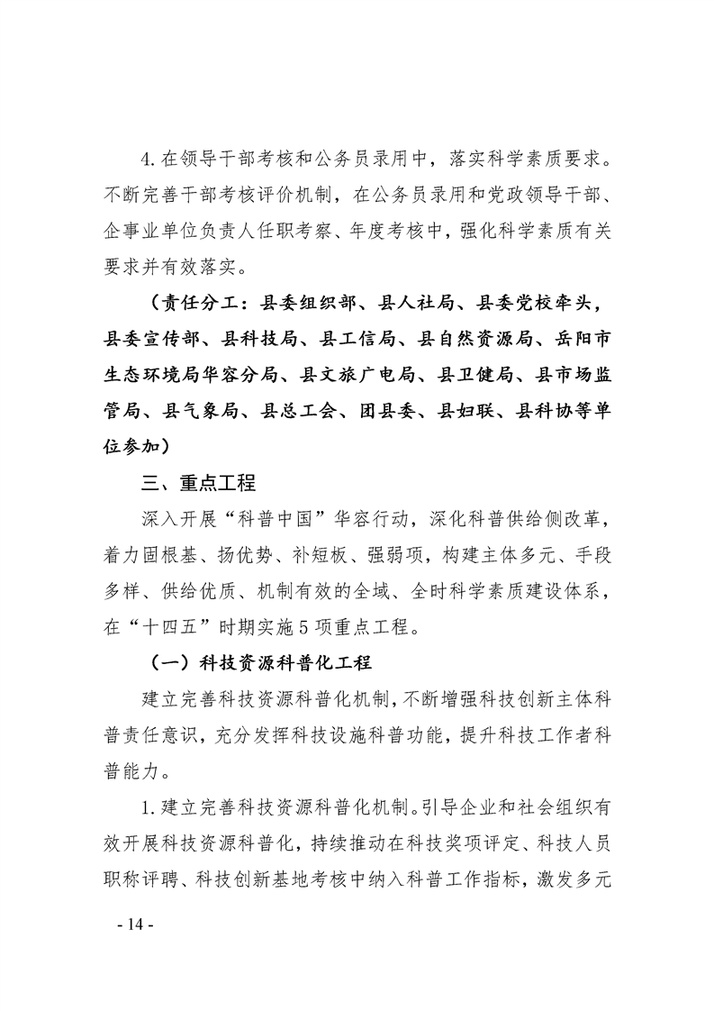 华容县人民政府办公室 关于印发《华容县全民科学素质行动规划纲要 实施方案(2022-2025年)》的通知
