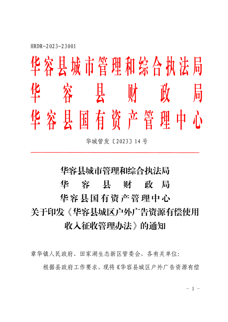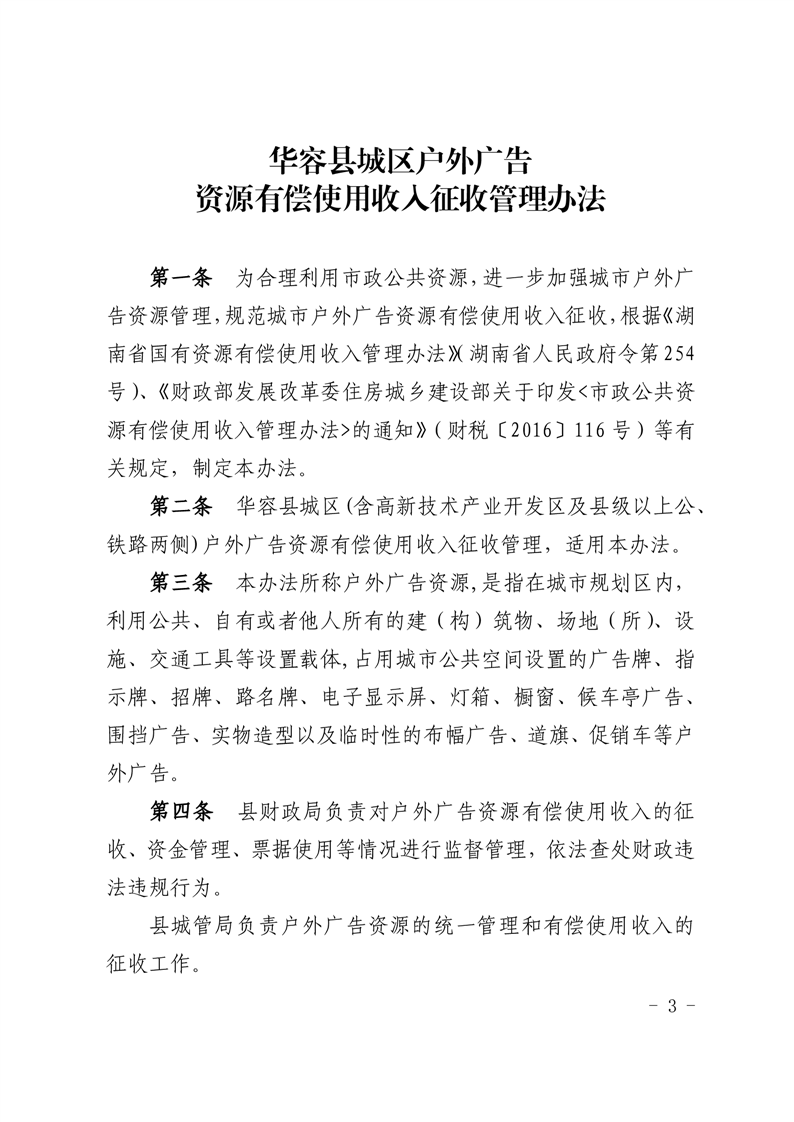 关于印发《华容县城区户外广告资源有偿使用收入征收管理办法》的通知