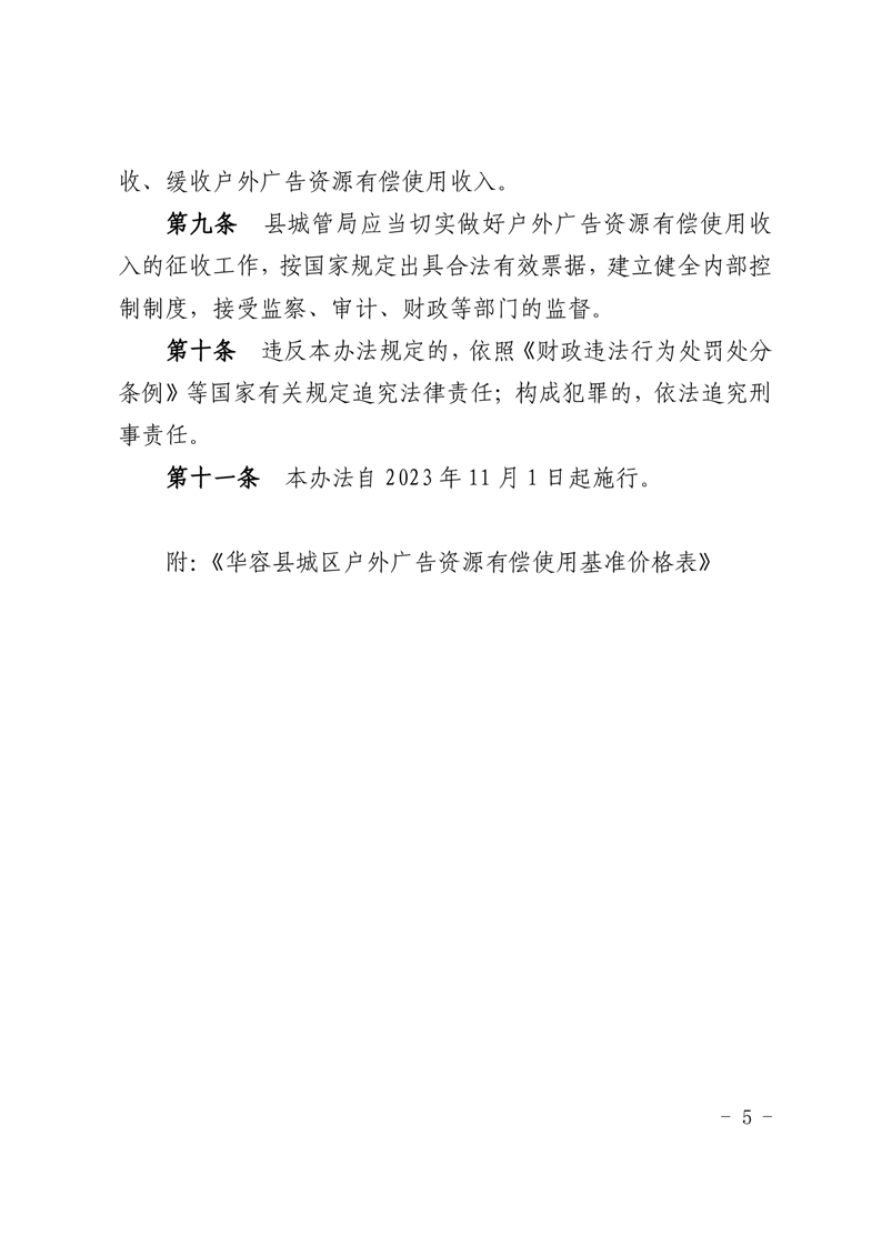 一图读懂《华容县城区户外广告资源有偿使用收入征收管理办法》