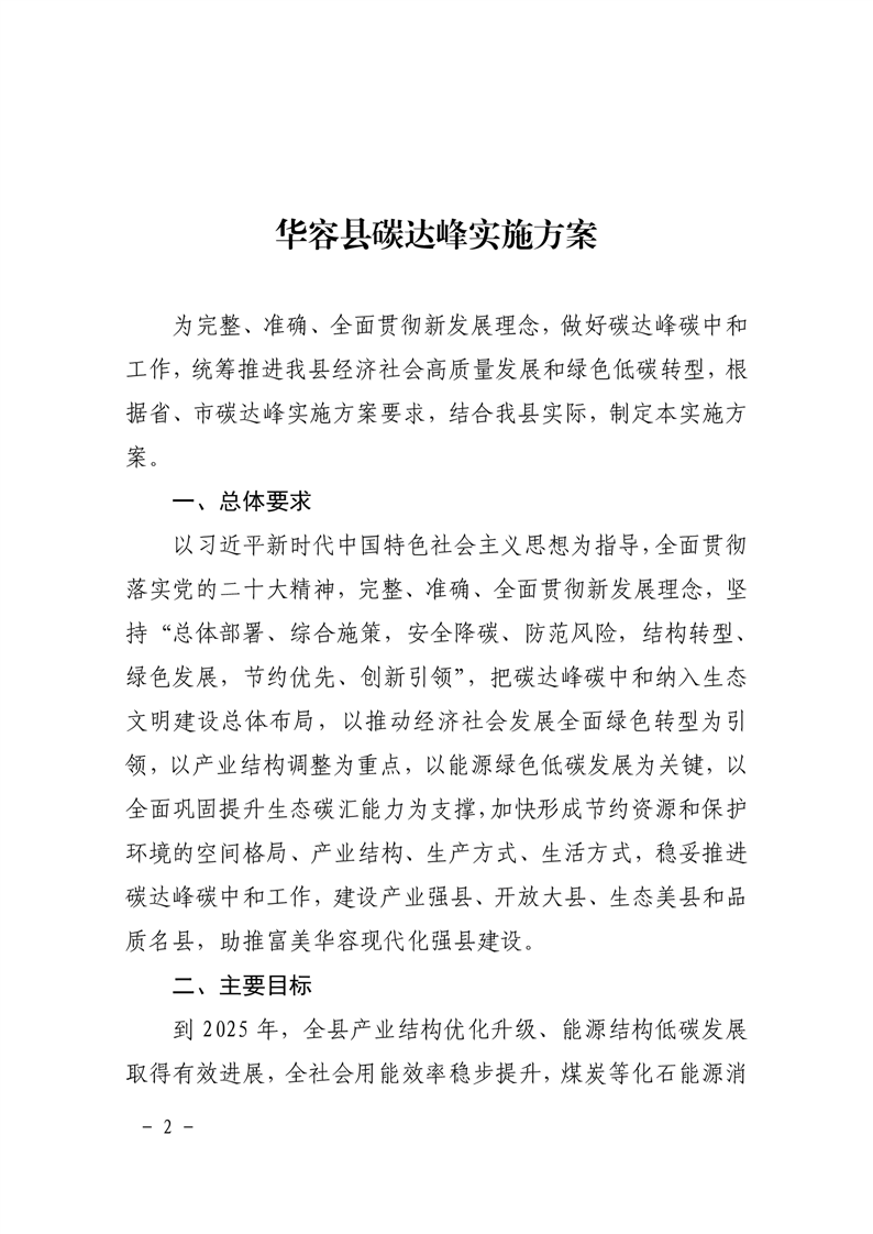 华容县人民政府关于印发《华容县碳达峰实施方案》的通知