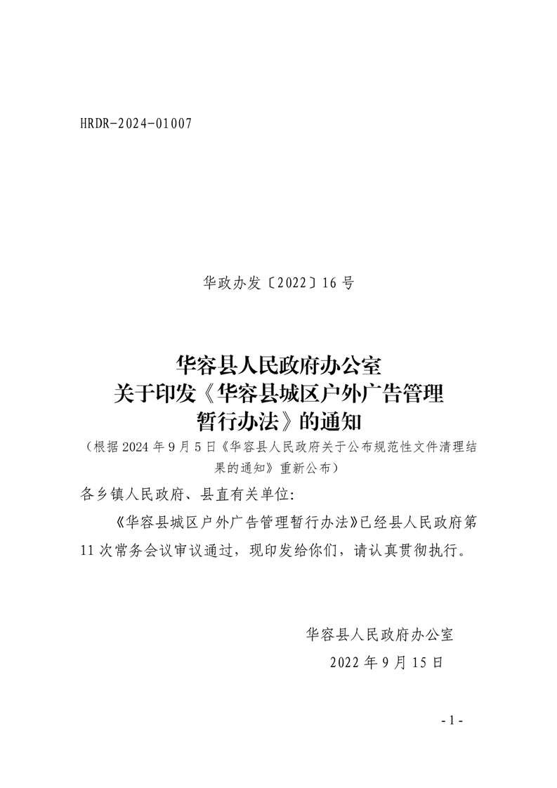 华容县人民政府办公室关于印发《华容县城区户外广告管理暂行办法》的通知