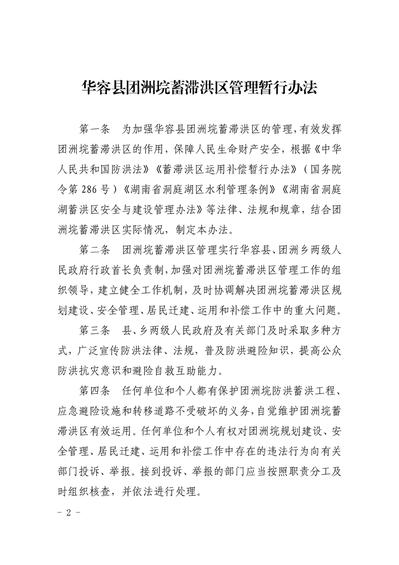 【部门解读】《华容县团洲垸蓄滞洪区管理暂行办法》解读说明