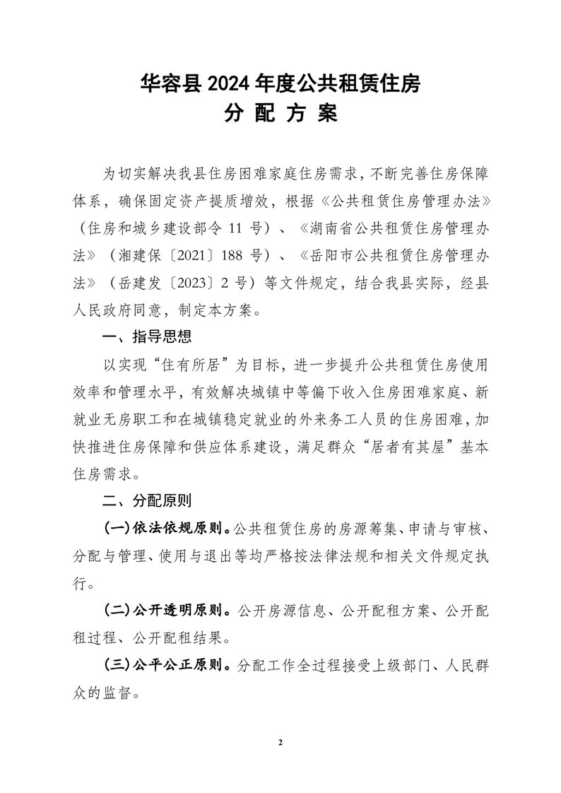 关于印发《华容县2024年度公共租赁住房分配方案》的通知