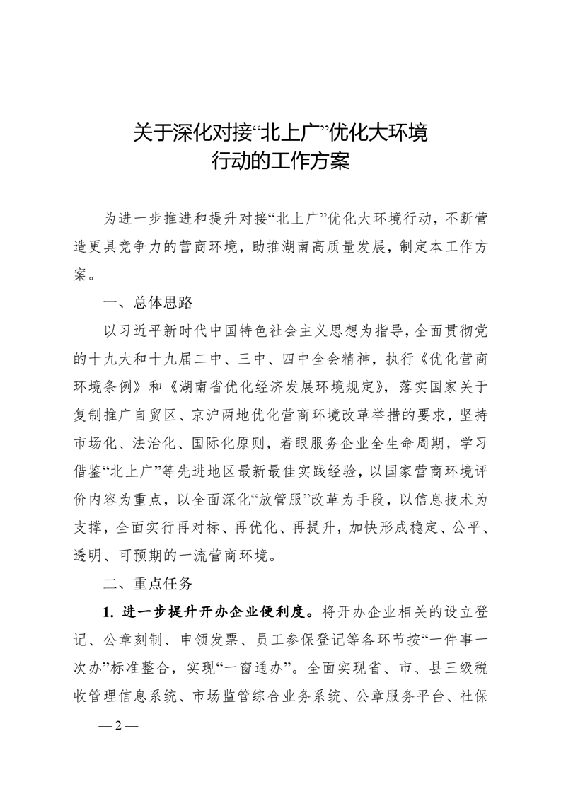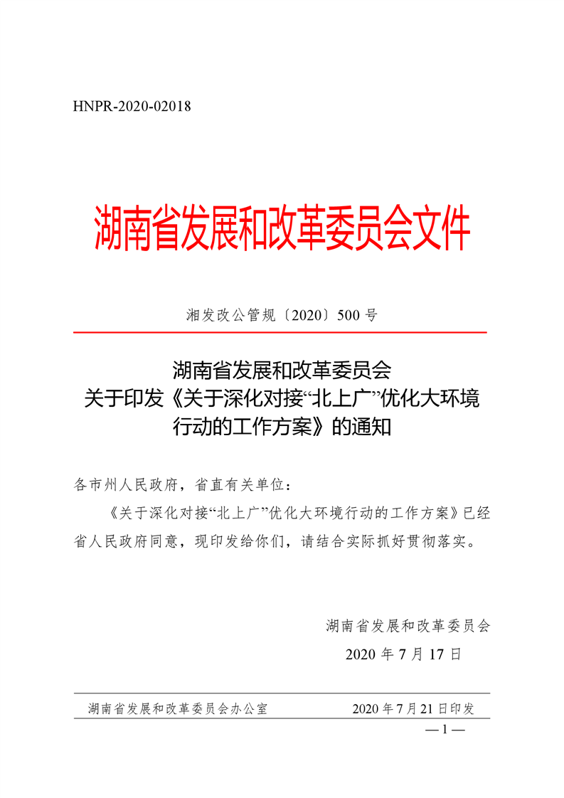 湖南省发展和改革委员会 关于印发《关于深化对接“北上广”优化大环境行动的工作方案》的通知