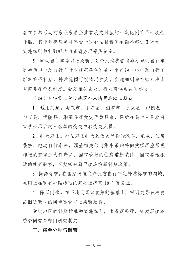 湖南省人民政府办公厅关于印发《湖南省超长期特别国债资金支持消费品以旧换新实施方案》的通知
