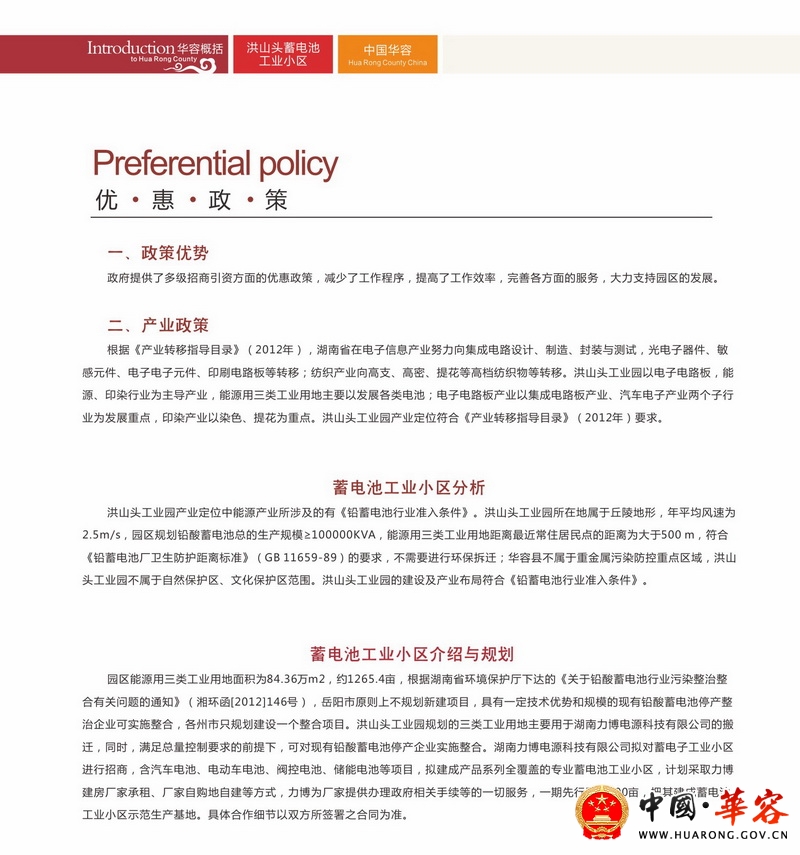 洪山头蓄电池工业小区招商手册