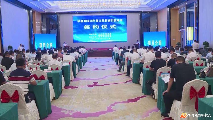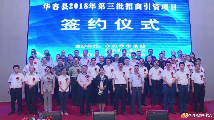 本次是华容县2018年第三批重大招商引资项目签约仪式。集中签约的项目中涵盖智能制造、电子科技、服装纺织、现代农业科技、医药卫材、总部经济多个领域,总投资154.22亿元。其中,过亿元项目15个,分别为:金润产业示范园项目(投资14亿元)、卓尔诺玻璃盖板生产项目(投资30亿元)、湖北嘉麟杰针织服装产业园项目(投资15亿元)、治河渡农业产业化特色小镇项目(投资50亿元)、漫虹谷48万吨竹加工生产项目(投资20亿元)、海济药业二期生产项目(投资5亿元)、宏超无纺布生产项目(投资2.4亿元)、海王医药生产及销售项目(投资2亿元)、兄弟制冰产业基地项目(投资2亿元)、茂泰业锂电池生产项目(投资2亿元)、益和顺豆奶生产项目(投资1.8亿元)、新富水产品加工项目(投资1.3亿元)、洞庭旺旺食品加工项目投资(1.2亿元)、日永智能设备生产项目(投资1亿元)、锦固鸿散热材料生产基地项目(投资1亿元)。