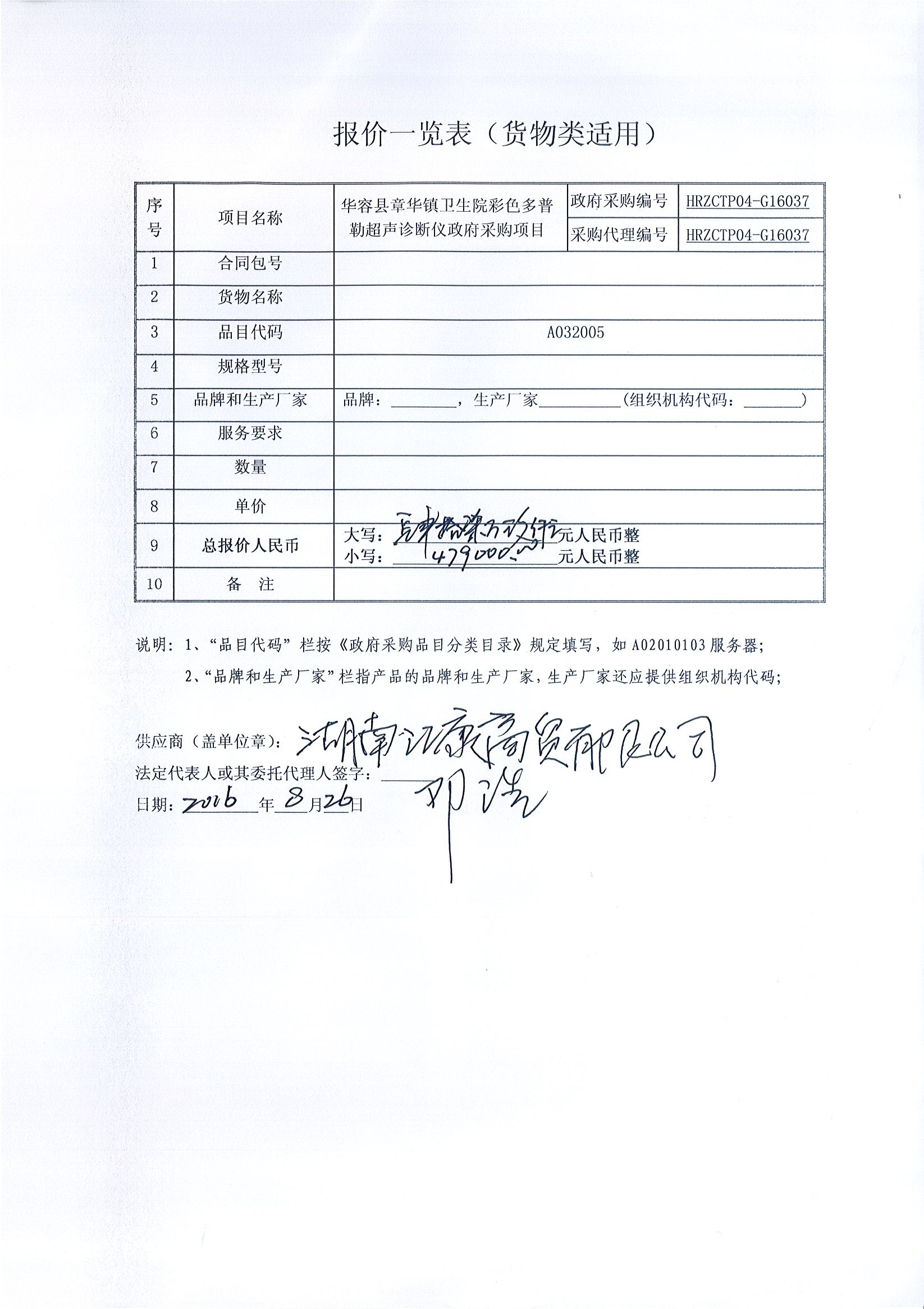 华容县章华镇卫生院的华容县章华镇卫生院彩色多普勒超声诊断仪政府采购项目竞争性谈判采购项目于2016年8 月26 日结束,现将成交结果公告如下: