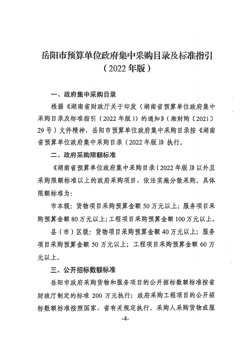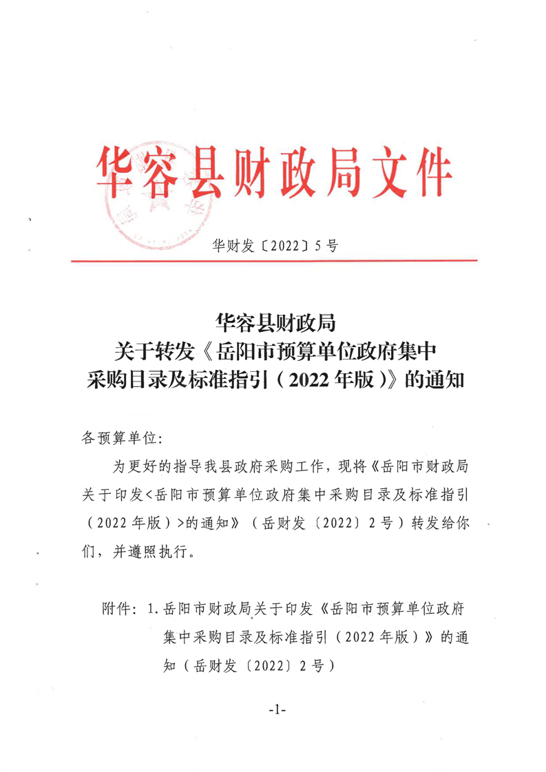华容县财政局关于转发《岳阳市预算单位政府集中采购目录及标准指引(2022年版)》的通知》(2022-2027有效)