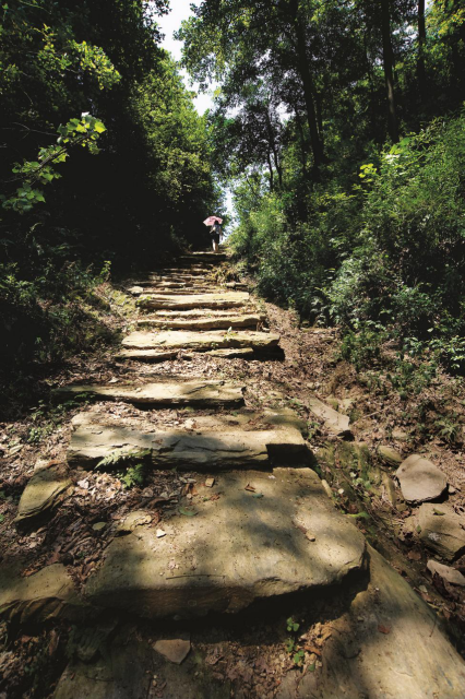 行走在华容道上,八亿年前海洋地震所产生的沉积岩随处可见,墨绿斑斓的青石、古藤缠绕的橡树,给华容道增添了无限神秘的色彩。