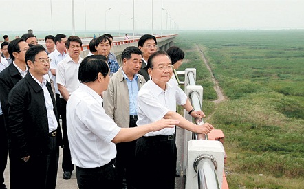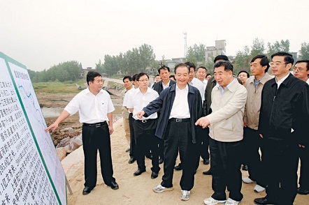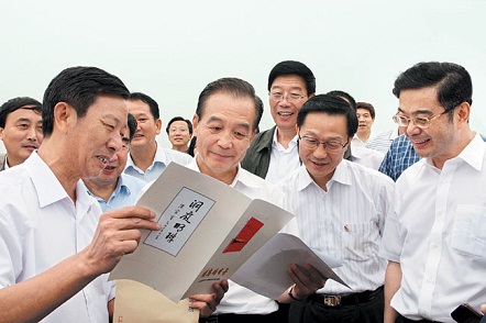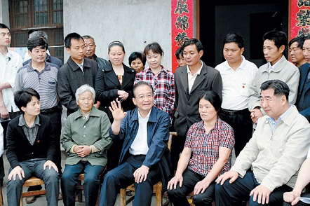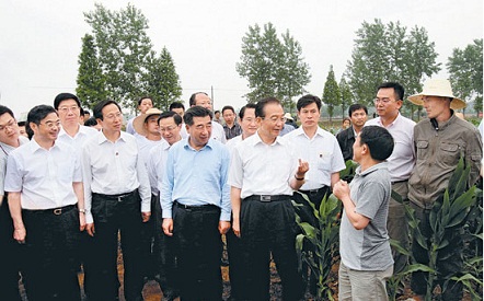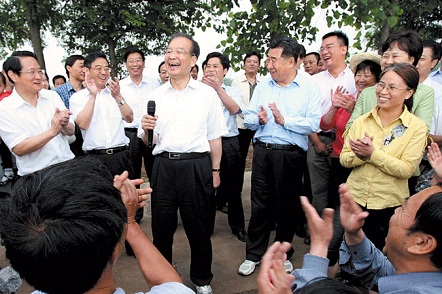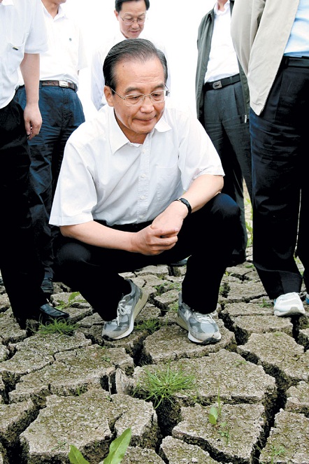 6月2日,中共中央政治局常委、国务院总理温家宝,中共中央政治局委员、国务院副总理回良玉走进岳阳市君山区柳林洲镇新洲村,了解村民抗旱情况。