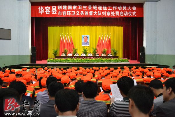 5月23日下午,华容县创建国家卫生县城迎检工作动员会暨市容环卫义务监督大队纠章处罚启动仪式在县影剧院隆重举行。会议动员全县上下迅速行动起来,鼓足干劲、群策群力、全面冲刺,确保创建国家卫生县城工作在5月27日至28日迎检验收中顺利通过基础评估,赢得创国卫“入场券”。喻文作重要讲话,毕金林主持大会。胡光前、张祖荣、雷欣、朱建平、向阳、蔡宜生等县领导出席会议。