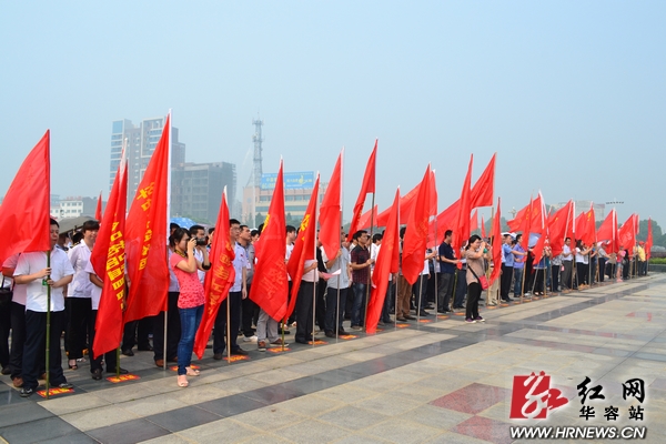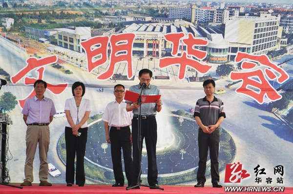 6月12日上午,华容县人民广场,红旗招展、国歌嘹亮、誓言铮铮,一派热烈的喜庆气氛。华容县委副书记蒋南贵,县委常委、宣传部长、统战部长毕金林,县委常委、副县长雷欣,县人大常委会副主任朱建平、县政协副主席蔡宜生,和华容县委机关大院内的所有单位及相关单位公职人员、青年志愿者及市民代表在这里隆重集会,以宣言和签名的方式,表达对县城禁止乱吐乱扔乱停乱穿等违规行为的决心和信心。毕金林主持启动仪式。