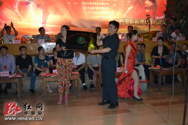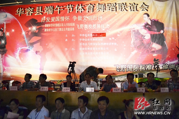 毕金林在晚会上致辞。华容县自争创全国文明县城以来,一直将提高市民文化素养作为重要的一环。国际舞、广场舞等各类舞蹈走入千家万户,为市民文化生活增光添彩。毕金林鼓励全县人民抒发爱国情怀,争做文明市民,大力支持华容文化事业建设,并向来自四面八方的舞友致以端午佳节的问候。随后湖南省体育舞蹈协会主席薛来芬向县飞野国际舞培训学校校长颁发“湖南省体育舞蹈后备人才培训基地” 及“湖南省体育舞蹈少儿拉丁舞定点考级基地”两块授牌,对华容县体育舞蹈发展寄予厚望。