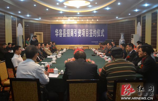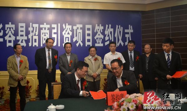 10月17日上午,华容县人民政府与湖南科力嘉纺织股份有限公司、华容县华诚纺织有限责任公司、岳阳市兰峰水泥有限责任公司、中国水电顾问集团中南勘测设计研究院和内蒙古兴蒙投资集团有限责任公司在华容宾馆举行了隆重的签约仪式,五大项目总投资累计达37.7亿多元。汪涛、喻文、蒋南贵、胡光前、张祖荣、蔡勋华、严银辉、张大宏等县领导出席签约仪式。