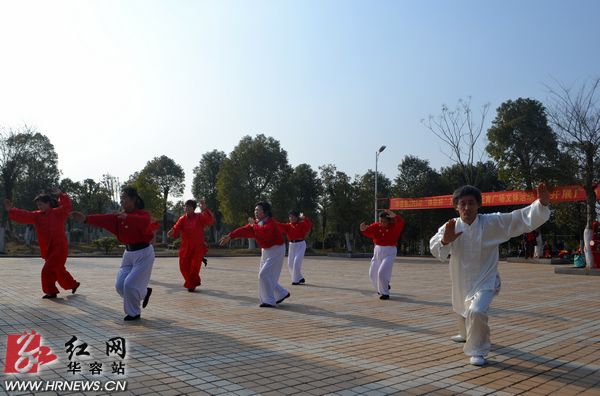 清水广场,老人们在表演太极拳,喜庆元宵节