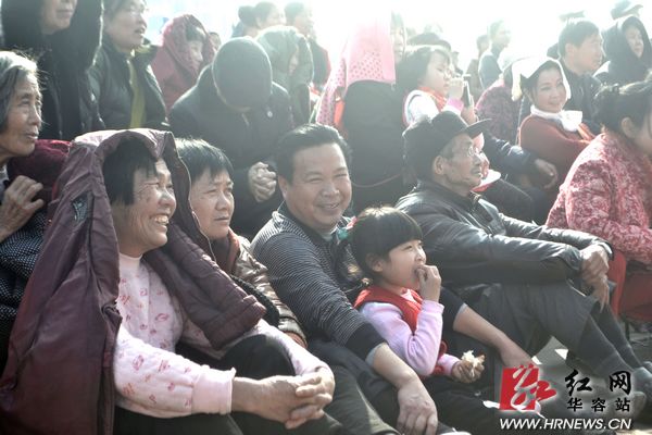 没有绚丽的节目单,也没有华丽的大舞台,但这里却更让人民群众感到亲切畅爽,大叔带着闺女,公公牵着婆婆,或席地而坐,或随地而立,还有不少人自带椅子板凳前来,台上台下共同感受着传统民俗文化的魅力。