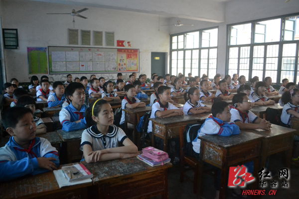 5月29日,华容县实验小学六年级二班的同学们正认真听讲,共学文明公约
