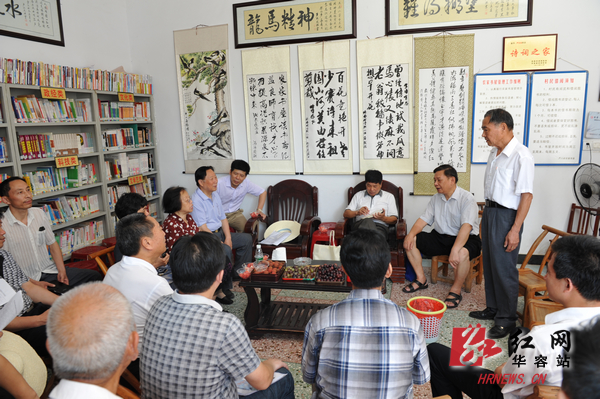 6月19日上午,“中华诗词之乡”检查组在华容县诗词协会办公室参观