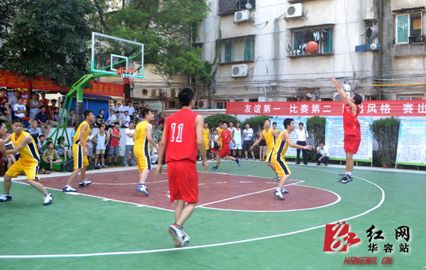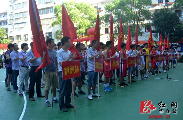 7月10日,华容县2013年“物业杯”男子篮球赛开幕现场