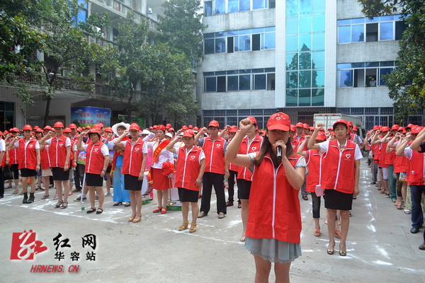 西街社区志愿者宣誓为建设和谐文明社区而努力。