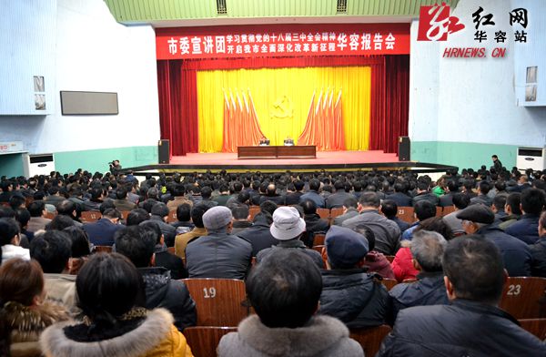 12月19日下午,岳阳市委宣讲团“学习贯彻党的十八届三中全会精神,开启我市全面深化改革新征程”首场专题宣讲报告会在华容举行