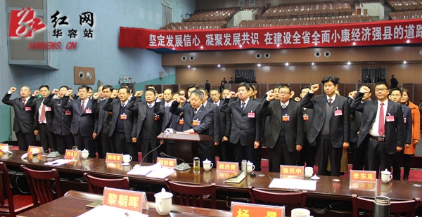 2日下午,华容县第十七届人民代表大会第一次会议闭幕会上举行集体宪法宣誓仪式。