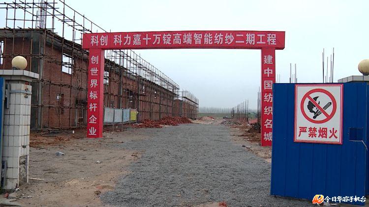 科创纺织有限公司第一期总投资3.9亿元,占地面积7.2万平方米,纺纱规模50000锭,纱线年生产能力18000吨;第二期计划总投资5.6亿元,2019年全部竣工,投产后可年产各类纱线2.5万吨,年创产值6亿元。