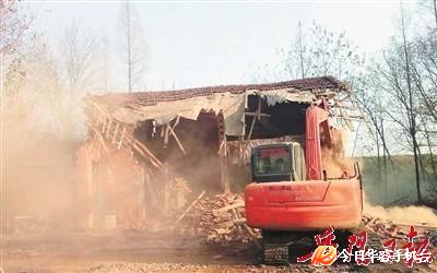图为华容县“空心房”整治机械化拆房