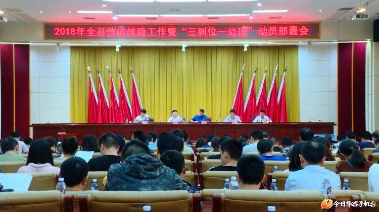 4月11日,华容县召开2018年全县信访维稳工作暨“三到位一处理”动员部署会。县委常委、县政法委书记谢志辉,县人大常委会副主任陈绍汉,副县长、县公安局局长金辉、副县长范文科出席会议。