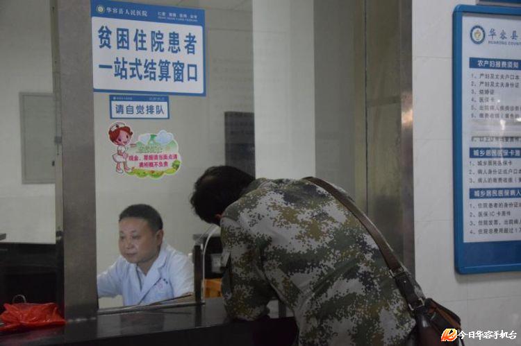 华容县人民医院设置的一站式结算窗口 与此同时,为确保贫困群众“住得起院,看得好病”,华容县积极落实“一减免、一兜底、两补贴、两降低、三提高”政策,统筹整合卫计、人社、财政、民政、慈善总会及“扶贫特惠保”平台等多方资源,建立完善起基本医保、大病保险、医疗救助、扶贫“特惠保”“四位一体” 的政策兜底保障体系。全县农村建档立卡贫困户合作医疗参保费用由财政予以50%补贴,特困人口全额补贴。贫困人口在乡镇卫生院、县级医院住院起付线分别降至100元、300元。对患有精神疾病贫困人口住院治疗自付费用(含生活费用)由财政予以兜底保障,残疾贫困人口免费实施康复救治。对在公立医院门诊治疗费用,凭身份证和医保卡同样享受一站式结算,实行统筹报销80%以上,切实减轻贫困患者医疗负担。2017年,华容县建档立卡贫困户因病住院达6561人次,共支付综合医疗保障费用3392.85万元,所有贫困患者出院仅需自付10—15%治疗费用。