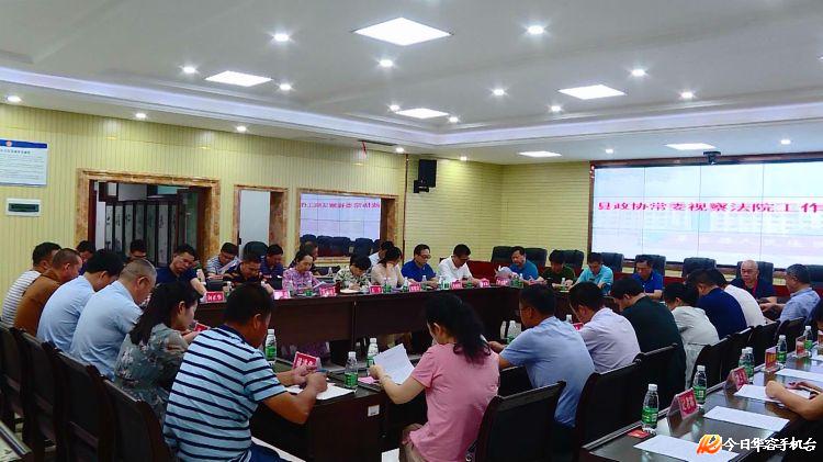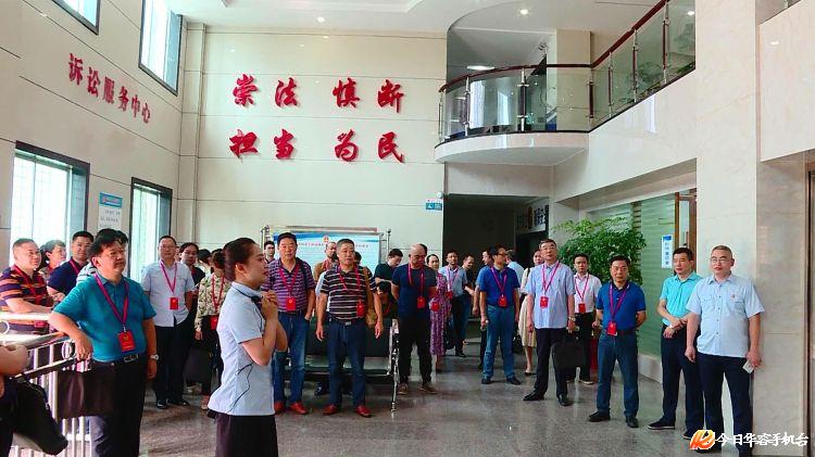 7月9日,华容县政协主席徐康荣率全体政协常委、各委办主任和各乡镇联工办主任到县人民法院视察工作。县委常委、政法委书记谢志辉,县政协副主席文丽萍、罗绍洪、刘云华、廖权赋参加视察。