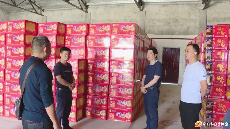在腾安烟花鞭炮有限公司仓库,黎朝晖对仓库库存、进货渠道、销售渠道、销售量一一进行了询问、检查。黎朝晖说,虽然烟花鞭炮销量下降,但安全意识不能放松,安全生产力度不能减弱,要紧绷安全生产这根弦,做到措施到位、保障到位。