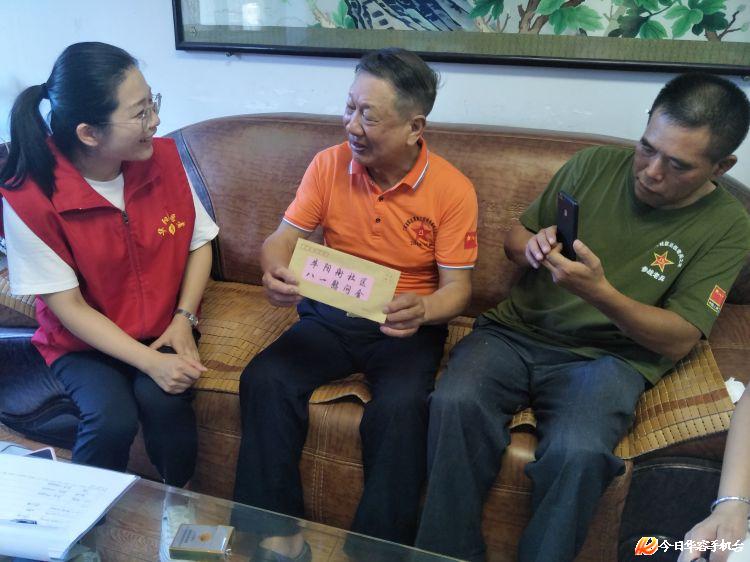 “马上就是建军节了,过来看望您,祝您身体健康。”来到退伍参战老兵张子炎和黎建军家中,社区党总支书记张善植一行向他们表示敬意,并提前送上节日的祝福,送上慰问金和问候。