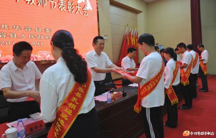 在第35个教师节来临之际,华容县委县政府举行表彰大会,对获得全县2019年最美乡村教师、“四有”好教师、优秀教育工作者、优秀班主任、师德标兵、教研教改能手、扎根边远地区优秀教师称号的119名教师进行集中表彰,并颁发荣誉证书。