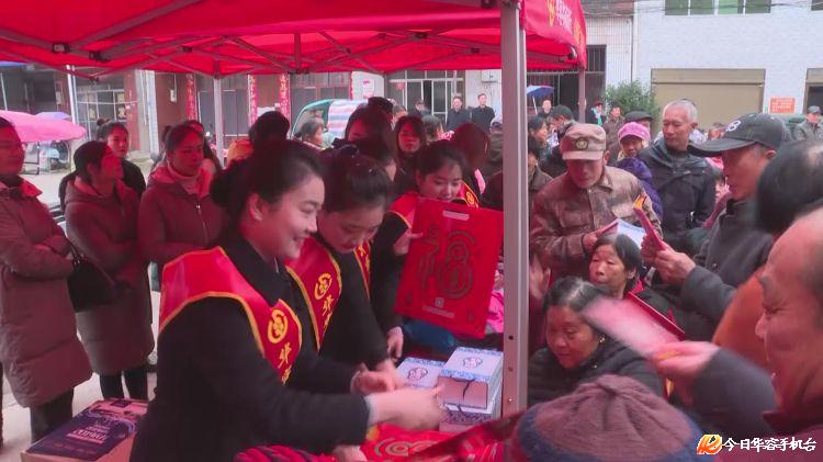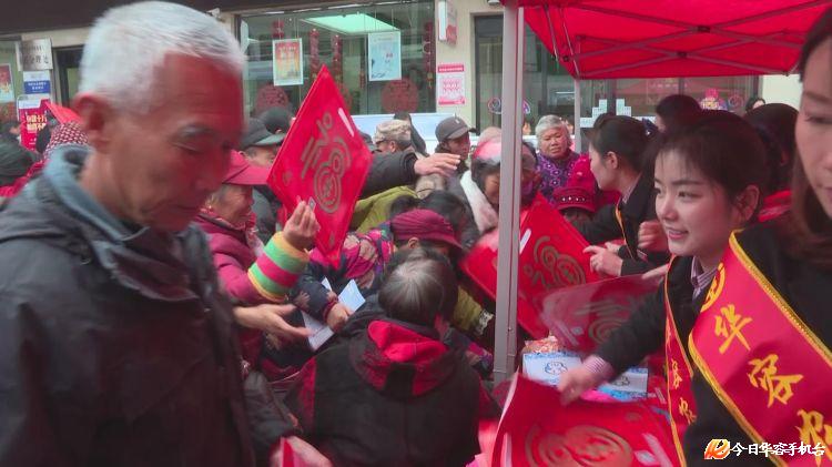 礼品发放:保温杯、双肩背包、对联红包,来者有份,喜气洋洋。