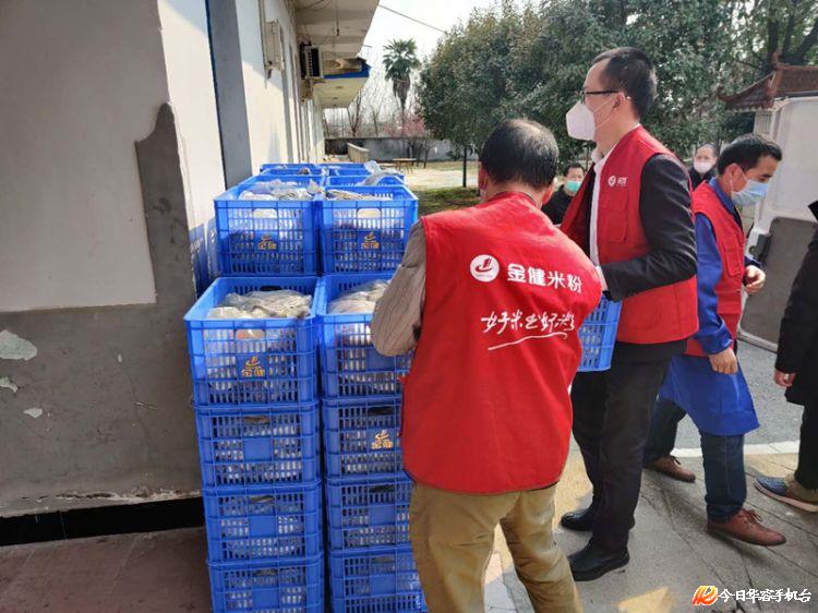 2月22日,湖南金健米制品公司华容基地负责人蔡文华开车拖着满满近5000公斤米粉先后来到了部分乡镇和县直单位疫情防控值守点,为战斗在“疫”线的网格信息员送上一份“爱心餐”。