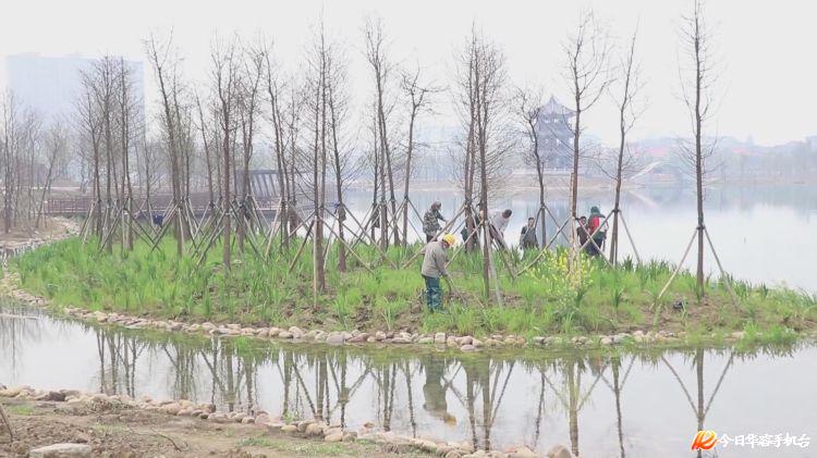 记者在状元湖湿地公园看到,工人们有的在剪树枝、有的在种植树木和水生植物。据介绍,工人们种植的水生植物有旱伞草、常绿水生鸢尾、粉花睡莲等19个品种;还有乔木56个品种。