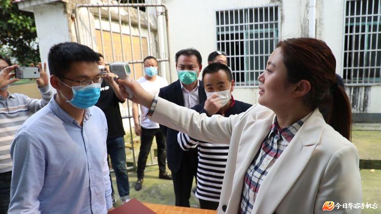 “老师同学们,进校门前,请掀起你的盖头来,今天,我来为你们测体温。”4月8日,在华容三中和怀乡中学校门口,副县长赵群子对准备进入校门的老师同学们温馨提示。