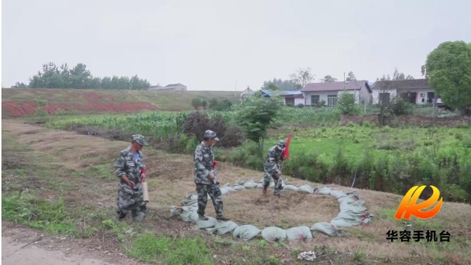 “报告副指挥长,我营大堤桩号4+784发现内滑坡险情,浸水明显,我营将组织机械、人工配合,采用砂砾石做透水支撑平台方式处理,请副指挥长指示!”6月2日上午,华容县团洲乡防汛抗旱指挥所二营营长王斯义正冒着大雨,手持对讲机向常务副指挥长李铁骑汇报险情。