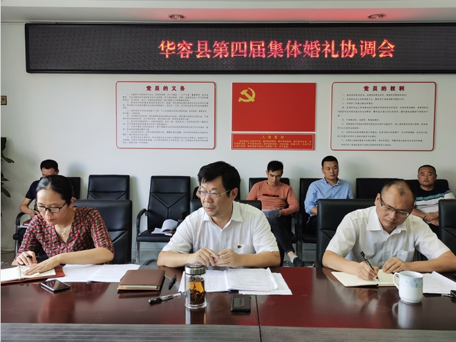 华容融媒体中心讯(记者 潘为伟)9月18日,华容县第四届集体婚礼协调会召开,县委常委、宣传部长张大宏,华容县第四届集体婚礼工作领导小组各成员单位、各办组负责人参加。