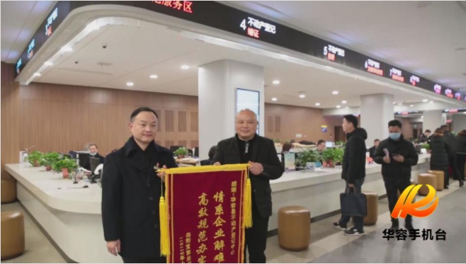 华容融媒体中心讯(记者 陈超)12月16日一大早,岳阳宝丽纺织品有限公司副总经理文华带着一面写着《情系企业解难题 高效规范办实事》锦旗来到华容县不动产服务中心,感谢不动产服务中心优质高效的服务。