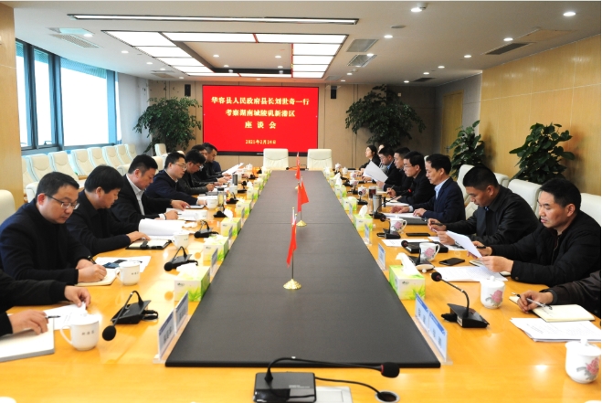 华容融媒体中心讯(特约记者 吴巍伟)2月24日,华容县委副书记、县长刘世奇带领县政府考察团一行来到城陵矶新港区,就加快融入长江百里绿色经济发展走廊建设,加强港口联运合作、产业园区打造等方面深入交流、谋求合作。市人大常委会副主任、新港区党工委书记黄俊钧出席座谈会。新港区党工委副书记、管委会主任王文华,华容县副县长李勇等陪同参加。