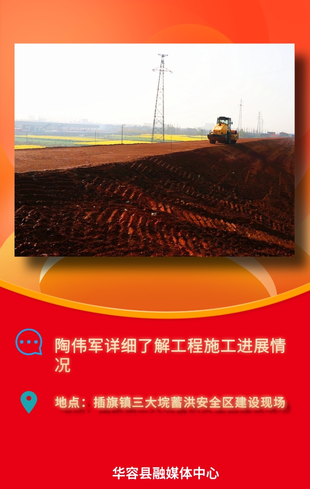 ↑↑↑在插旗镇三大垸蓄洪安全区建设现场。陶伟军指出,蓄洪区安全建设对于改善蓄洪区人居环境意义重大,要把工程建设同乡村振兴工作有机结合,全面改善沟渠、道路、水系等环境面貌,推进蓄洪安全区集中规范建房,深化农村人居环境整治,提高群众的幸福感、获得感。