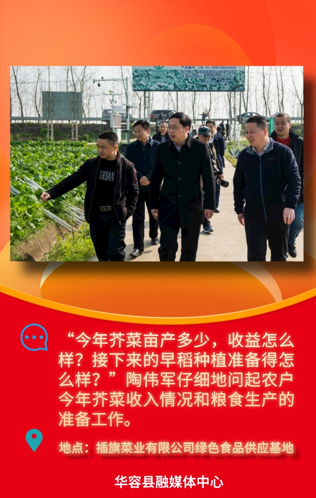 华容融媒体中心讯(记者 白梅兰 陈宏)3月12日,县委书记陶伟军深入插旗镇、注滋口镇、团洲乡等地现场调度安全区建设、粮食生产、“空心房”整治、水利整险工作。县委常委、县委办主任胡军参加。陶伟军一行全程不坐会议室听报告、看材料,直赴现场解决实际问题。