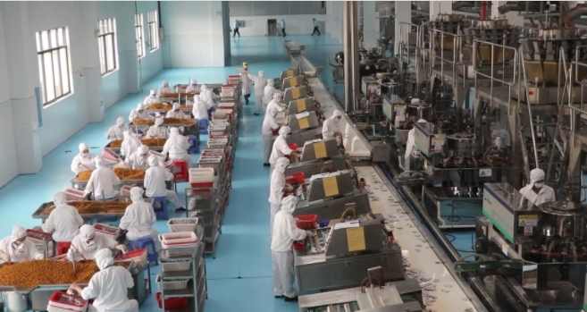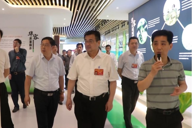 徐新楚一行来到湖南开口爽食品有限公司,走进产品展示馆,听取了公司发展情况及产品介绍,并深入生产车间,详细了解企业生产作业流程。