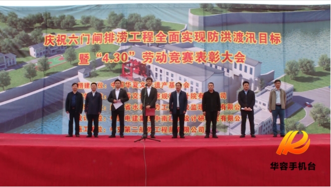 华容融媒体中心讯(记者 陈宏 杨雅淇)5月19日,华容县举行庆祝六门闸排涝工程全面实现防洪度汛目标暨劳动竞赛表彰大会。总结第一阶段工作成绩,表彰参建单位先进集体,进一步鼓舞和激励广大建设者再接再厉、攻坚克难,为加快推进六门闸排涝工程作出更大贡献。中国华夏文化遗产基金会副理事长高峰,县委书记陶伟军,副县长张兴隆及水利局相关负责人参加。
