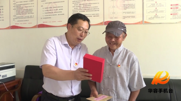 1945年出生的老党员周胡贤只读过四年书,识字不多,陶伟军将纪念章上的字大声念给老人听:“‘光荣在党50年’纪念章”。陶伟军还关切地询问其生活起居情况,并祝老人健康长寿、生活幸福。