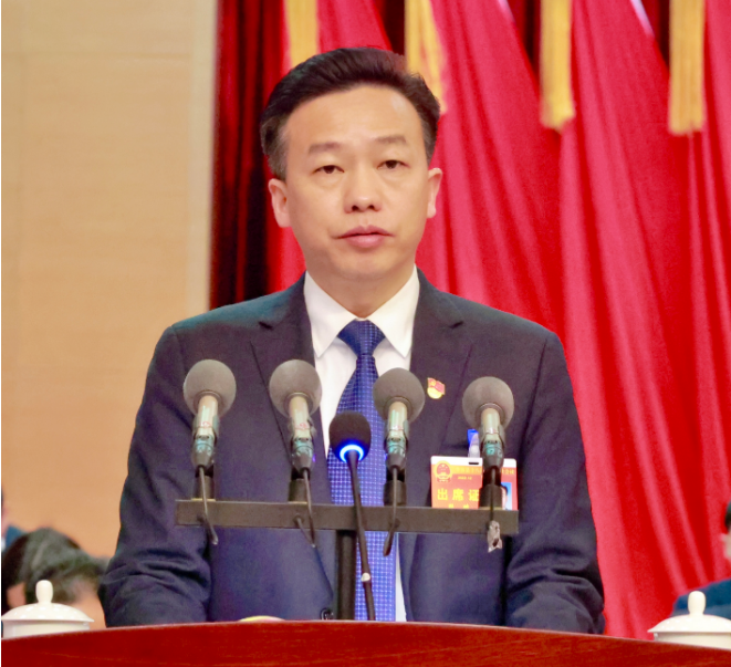 在热烈的掌声中,县委副书记、县长周鹏代表县人民政府向大会作《政府工作报告》。
